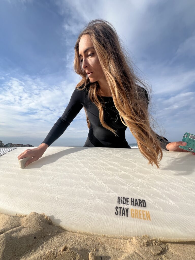 Nos noyaux de surf par exemple, permettent de réduire l’impact carbone de 97% par rapport à un pain de mousse traditionnel.